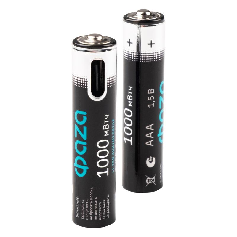 Аккумулятор литиевый AAA 1.5В Li-Ion 1000мВт.ч 660мА.ч зарядка от Type-C шнур в комплекте BL-2 (уп.2шт) ФАZА 5061637