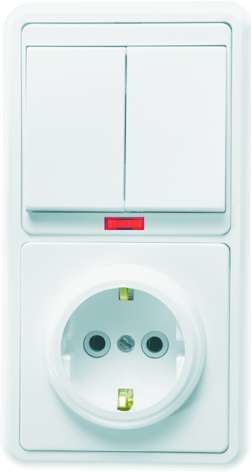 Блок БКВР-055 Бэлла (2-кл. выкл. с инд. + розетка с заземл.) бел. Кунцево 5833