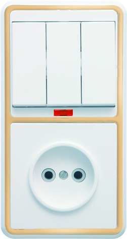 Блок БКВР-212 Бэлла (3-кл. выкл. с инд. + розетка) зол. Кунцево 5842