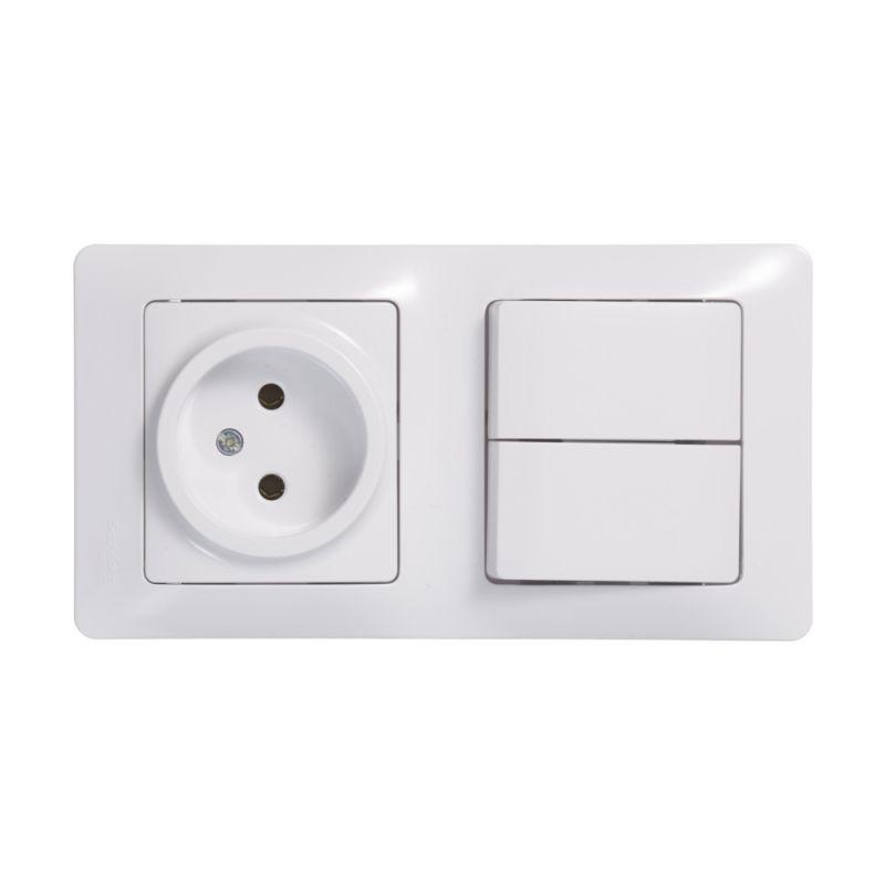 Блок комбинированный Systeme Electric (ранее Schneider Electric) серии Glossa (в сборе, цвет белый) предназначен для сетей до 250 В, состоит из розетки на 16 А и 2-клавишного выключателя на 10 А. - Блок удобен в применении и отлично подходит для коридора. - Двухклавишный выключатель позволяет управлять двумя источниками света из одной точки. - Выполнен из материала PС+ASA, стойкого к УФ-излучению и появлению царапин.