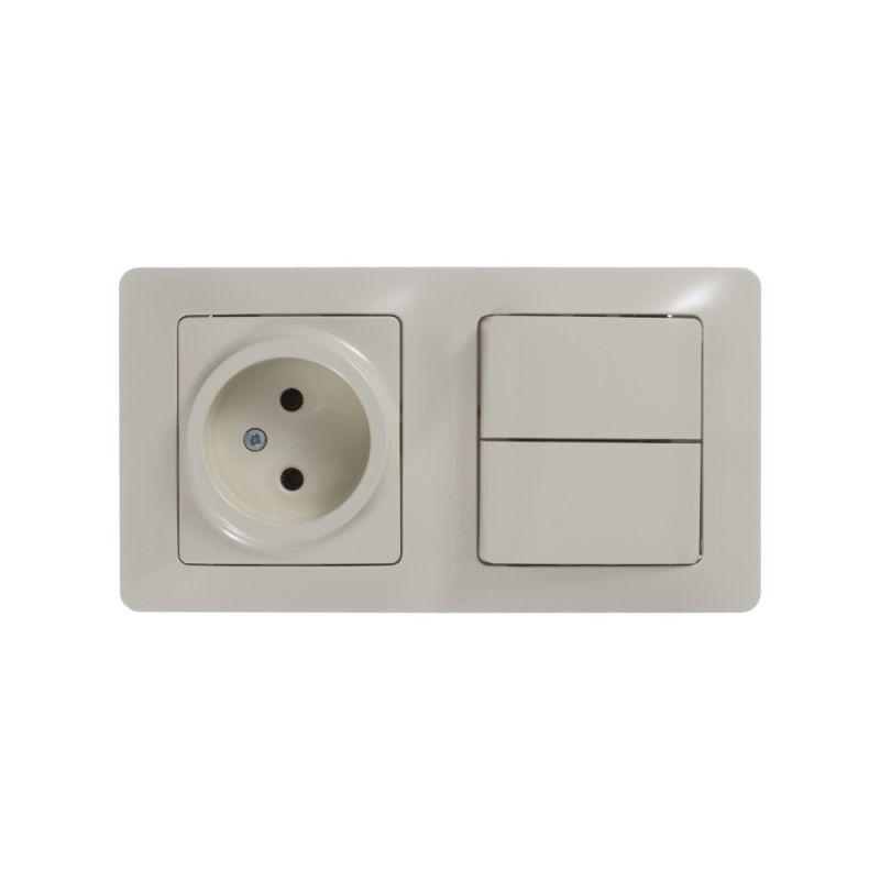 Блок комбинированный Systeme Electric (ранее Schneider Electric) серии Glossa (в сборе, цвет бежевый) предназначен для сетей до 250 В, состоит из розетки на 16 А и 2-клавишного выключателя на 10 А. - Блок удобен в применении и отлично подходит для коридора. - Двухклавишный выключатель позволяет управлять двумя источниками света из одной точки. - Выполнен из материала PС+ASA, стойкого к УФ-излучению и появлению царапин.
