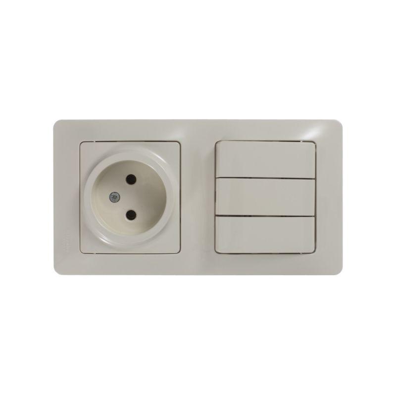 Блок комбинированный Systeme Electric (ранее Schneider Electric) серии Glossa (в сборе, цвет бежевый) предназначен для сетей до 250 В, состоит из розетки на 16 А и 3-клавишного выключателя на 10 А. - Блок удобен в применении и отлично подходит для коридора. - Трёхклавишный выключатель позволяет управлять тремя источниками света из одной точки. - Выполнен из материала PС+ASA, стойкого к УФ-излучению и появлению царапин.