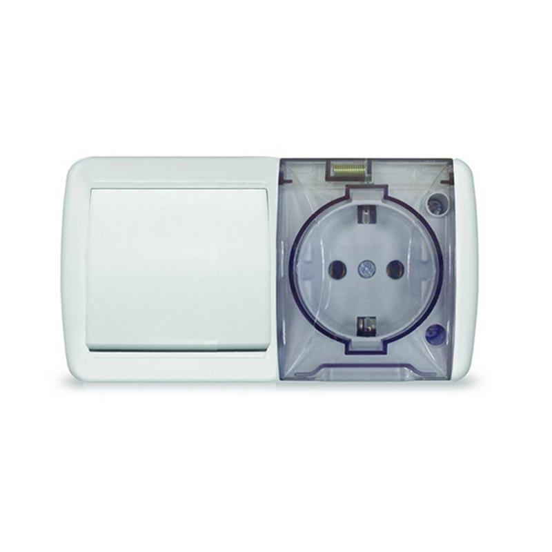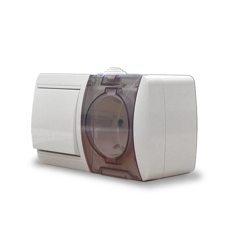 Блок ОП Клио 1-кл. выкл. 10А + розетка 1-м 16А 250В с заземл. с прозр. крышкой бел. Universal К2237