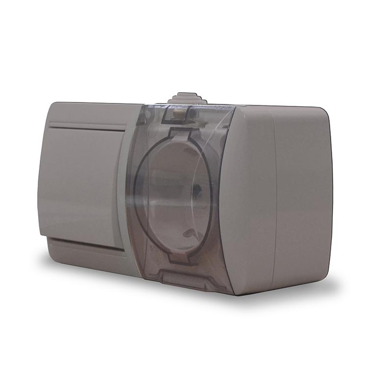 Блок ОП Клио 1-кл. выкл. 10А + розетка 1-м 16А 250В с заземл. с прозр. крышкой сер. Universal К2237-Gr