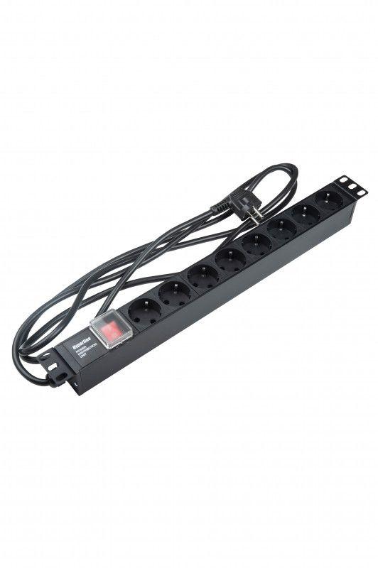 Блок розеток SHE19-8SH-S-2.5EU горизонт. 8 розеток Schuko выкл. 16А шнур 2.5м Hyperline 397034