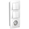 Блок Systeme Electric (ранее Schneider Electric) BLANCA (белый, скрытой установки) предназначен для сетей до 250В, состоит из розетки на 16А с заземлением и шторками и двух двухклавишных выключателей на 10А. Блок удобен в применении и отлично подходит для коридора. Шторки открываются при одновременном давлении в оба отверстия и препятствуют проникновению посторонних предметов.