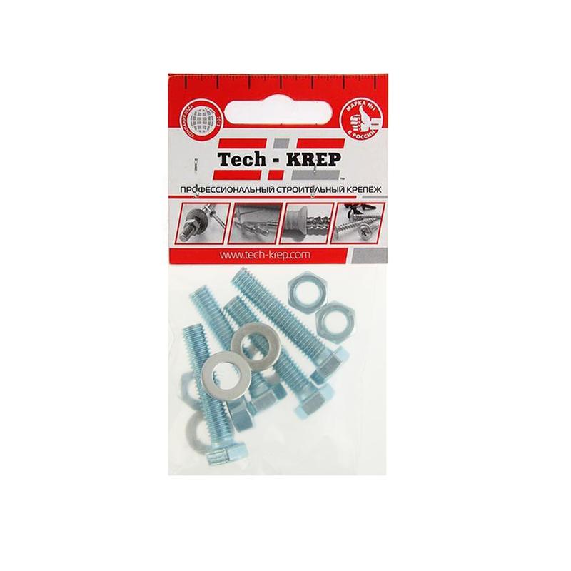 Болт с шестигранной головкой М8х40 DIN 933 + гайка + шайба оцинк. (уп.4шт) Tech-Krep/Zitar 112723