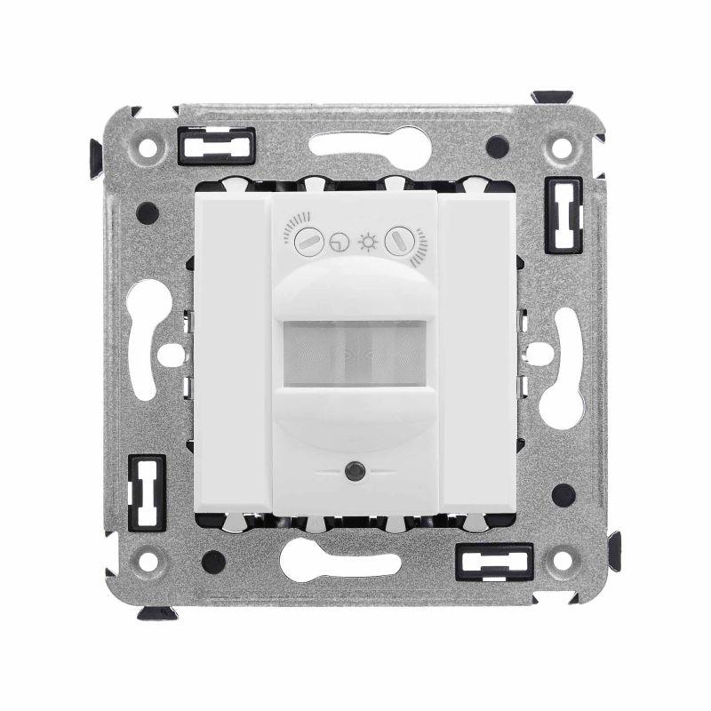 Датчик движения. Назначение: для монтажа в подрозеточные коробки глубиной не менее 45 мм (код 59301). Используется для автоматического включения/выключения света. Характеристики: диаметр отверстий для ввода кабелей – 3 мм; винтовые зажимы; шаблон для зачистки кабеля – 11 мм; расстояние обнаружения – от 2 до 12 м; угол охвата – 150°; время задержки отключения – от 10 с до 7 мин.; настройка светочувствительности датчика; настройка порога освещенности; фиксация в подрозеточные коробки глубиной не менее 45 мм при помощи каркаса с лапками (код 4400802) и саморезов. Цвет: "Белое облако". Производитель оставляет за собой право вносить во внешний вид изделия изменения, которые не влияют на его функционал, безопасность и надежность.