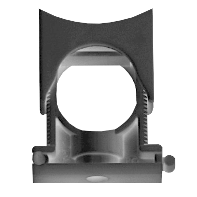 Раздвижной держатель из полиамида с крышкой фиксируется на поверхностях стен, потолков и т.п. и используется для крепления полиамидных труб. Внутренний диаметр держателя регулируется от 7 до 12 мм.