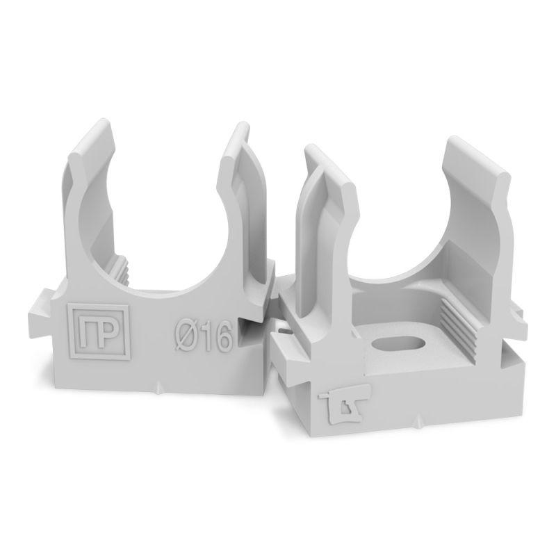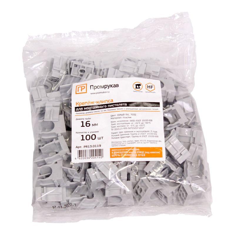 Держатель для труб (клипса) d16мм для монтажного пистолета сер. в п/э Промрукав PR13.0119