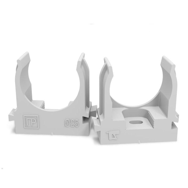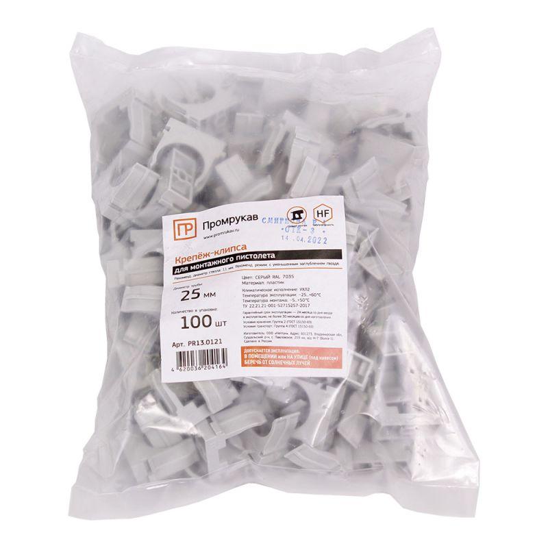 Держатель для труб (клипса) d25мм для монтажного пистолета сер. в п/э Промрукав PR13.0121