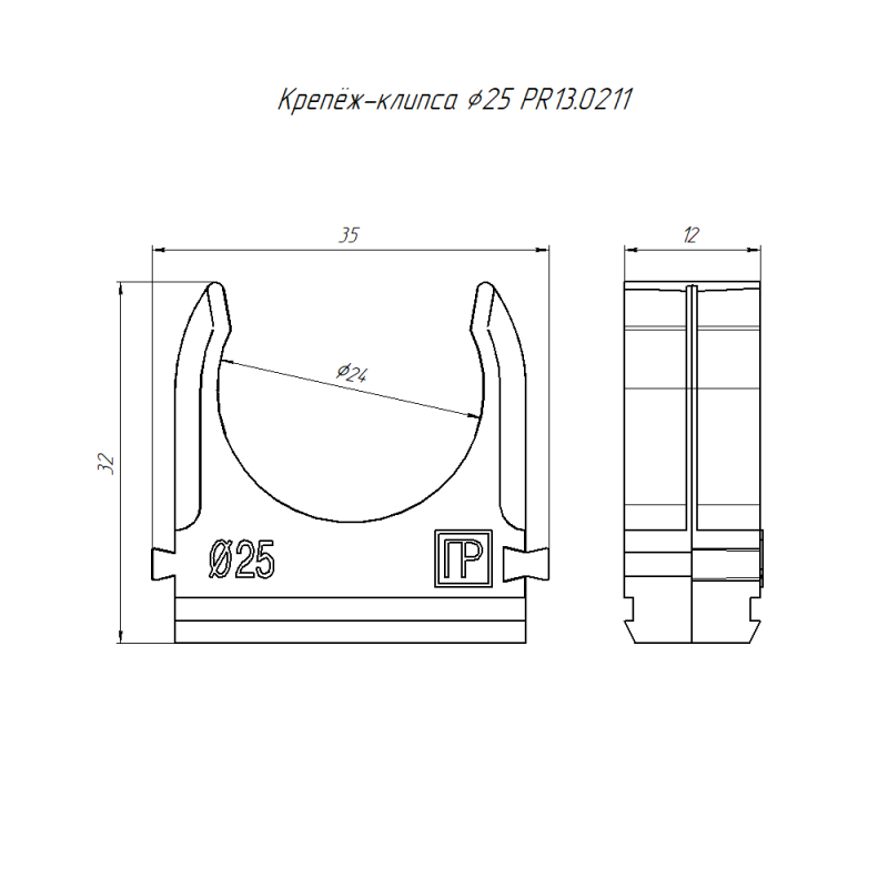 Держатель для труб (клипса) d25мм полистирол черн. (малая упак.) Промрукав PR13.0211