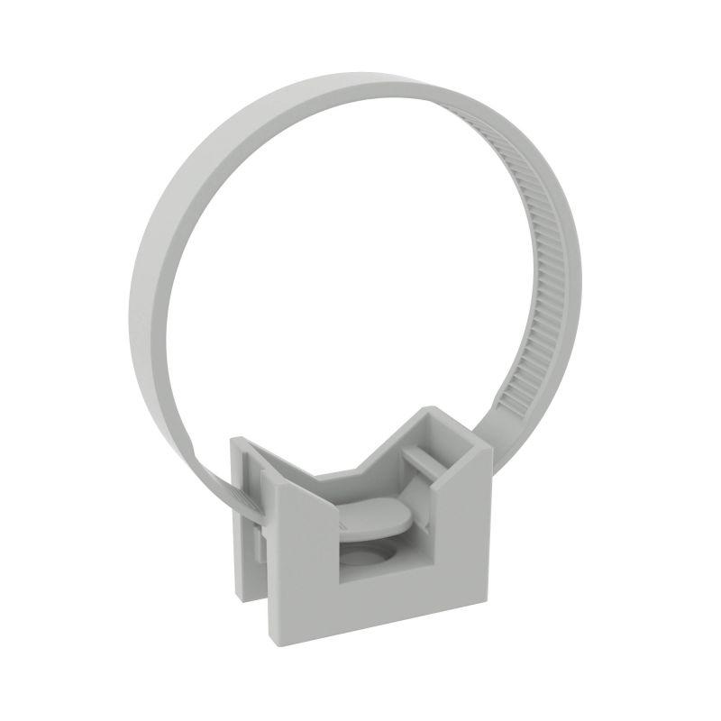 Держатель с хомутиком предназначен для крепления пластиковых и металлопластиковых труб, а также кабеля к поверхности стен, потолков, полов и перегородок. Диаметр - 25-63 мм. Материал: нейлон. Без содержания галогенов. Цвет серый RAL 7035. Элемент системы может эксплуатироваться при широком диапазоне температур: от –25°С до +60 °С.