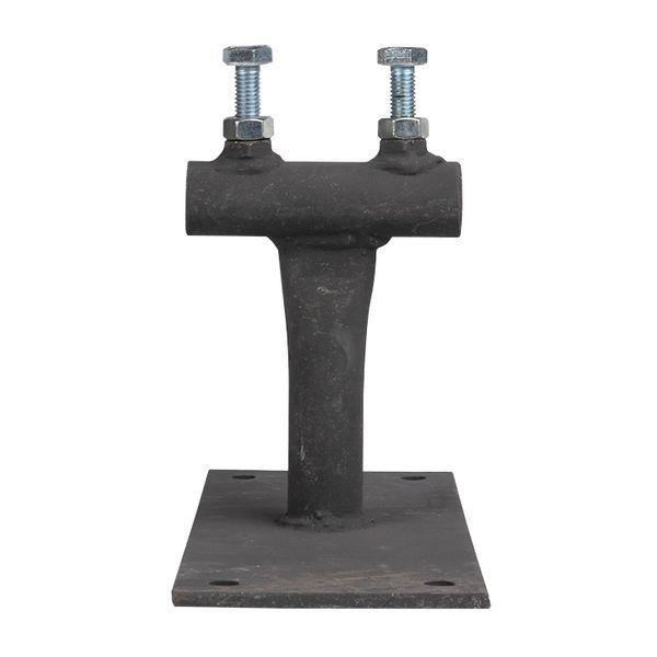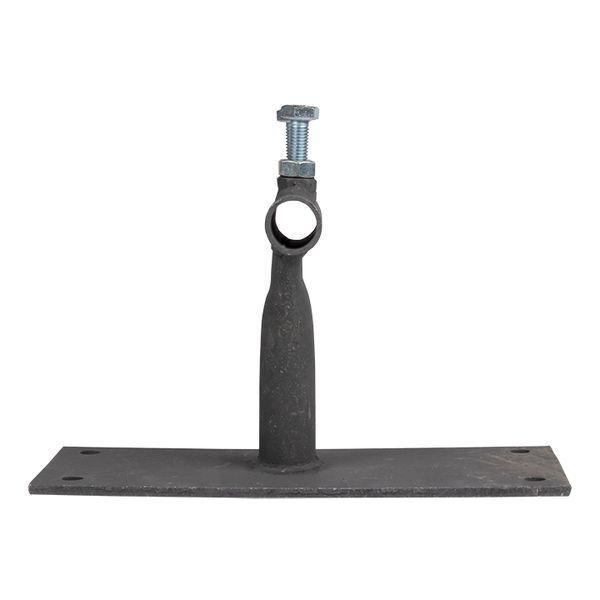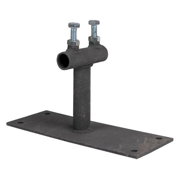 Предназначен для крепления молниеприёмного стержня на вертикальную поверхность, длинной до 4 метров. Организован вынос молниеприёмника на 110 мм, как необходимый зазор от горючей поверхности.
