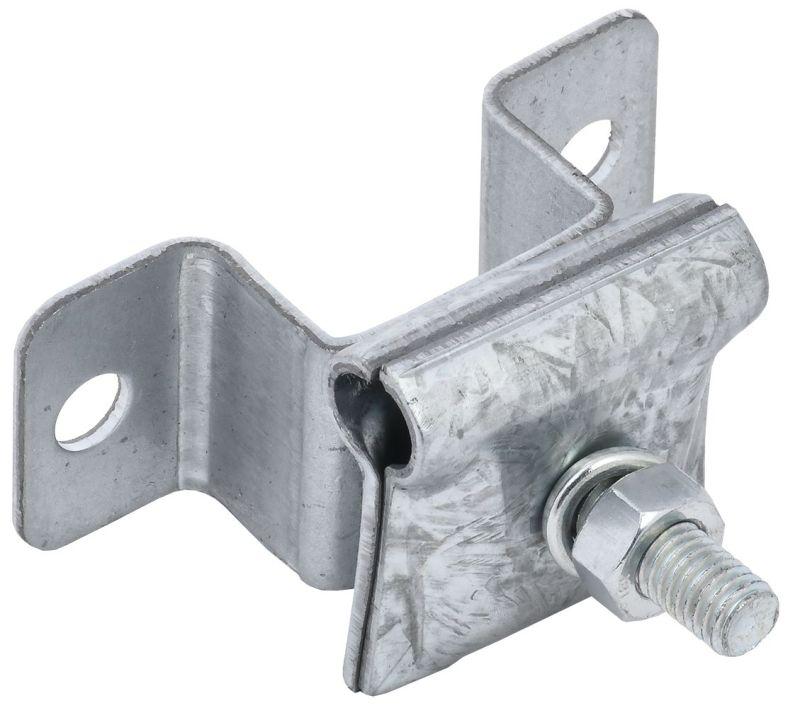Держатель-зажим соединительный круглого проводника 6 – 12 мм опорный L = 30 – 40 мм товарного знака IEK используется для крепления круглых проводников на фасаде либо кровле под прямым или произвольным углом или в параллельном направлении. Для крепления на плоскости скоба имеет два отверстия под винты М8.