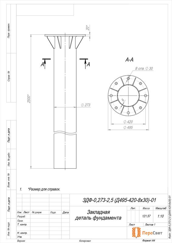 Деталь фундамента закладная для силовых опор ЗДФ-0.273-2.5(Д495-420-8х30)-01 Пересвет В00005792