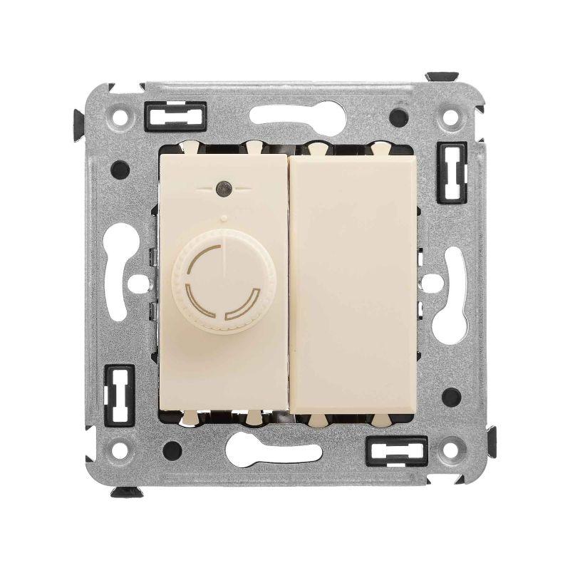 Диммеры предназначены для управления контуром освещения и регулировки интенсивности освещения помещения. Регулирование 60–800 Вт для ламп накаливания и галогенных ламп. Применяются для скрытой установки в стену, механизмы поставляются в комплекте с суппортом. Пластиковые детали электроустановочного изделия имеют оттенок "Ванильная дымка". Производитель оставляет за собой право вносить во внешний вид изделия изменения, которые не влияют на его функционал, безопасность и надежность.