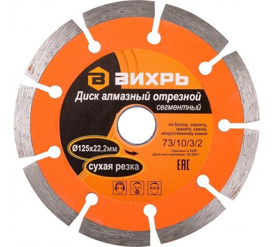 Диск алмазный отрезной сегментный 125х22.2ммсухая резка Вихрь 73/10/3/2
