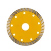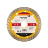 Отрезной алмазный диск Turbo используется для сухой и влажной резки строительных материалов, таких как кирпич, керамика, керамогранит, природный и искусственный камень, армированный и неармированный бетон. Применяется совместно с угловыми шлифовальными машинами, ручными электрическими плиткорезами, штроборезами. Диск состоит из стального корпуса и алмазного рабочего слоя, с высотой кромки 10 мм, что обеспечивает эффективную резку материала и долгий срок службы самого диска. Наличие специальных прорезей на ободе увеличивает скорость резки, повышает воздушное охлаждение, способствует отводу пыли, а также позволяет работать с диском без водяного охлаждения. Срок годности не ограничен. Хранить в сухом прохладном месте. Использовать строго по назначению. Внимание! Запрещается использовать диск для разрезания металлов. При установке диска руководствуйтесь стрелкой направления вращения диска. Используйте средства индивидуальной защиты. Не утилизируйте с бытовыми отходами.