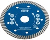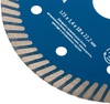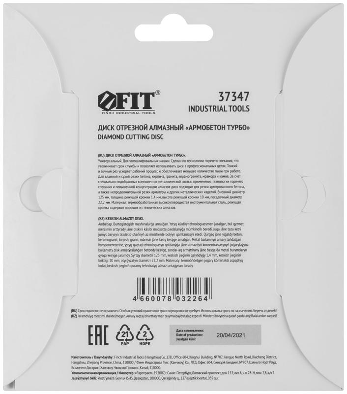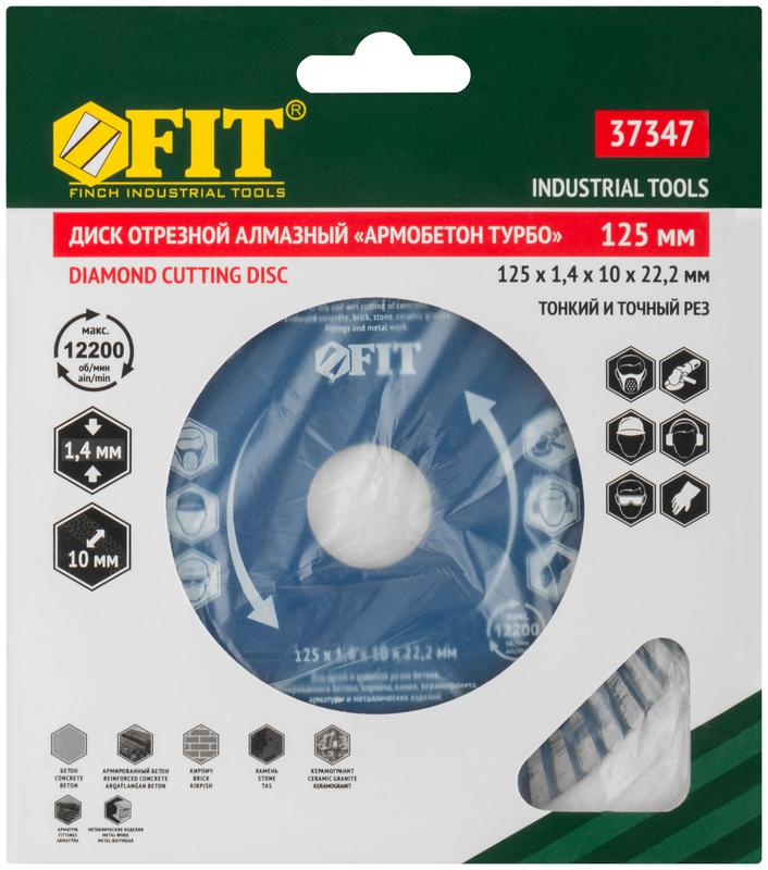 Диск отрезной алмазный ‘’Армобетон турбо’’ применяется для сухой и влажной резки бетона, кирпича, гранита, керамогранита, мрамора и камня. Диск изготовлен по технологии горячего спекания, обеспечивающего высокую износоустойчивость. Специально подобранные компоненты металлической связки и размер алмазного зерна позволяют эффективно резать широкий спектр твердых материалов, в частности армированный бетон, арматуру и металлический профиль. Высокий ресурс диска достигается за счет высоты алмазной кромки в 10 мм. Диск не уменьшается в диаметре при резке различных материалов. Перфорация на диске и сегментная форма рабочей части обеспечивают эффективное охлаждение и предотвращают деформацию во время работы. Диски способны эффективно работать без принудительного охлаждения водой.