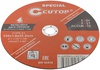Отрезной диск по металлу, нержавеющей стали и алюминию Cutop SPECIAL используется с УШМ для резки сталей и различных сплавов. Диск показывает лучший результат при резке металлочерепицы, листового профиля и тонкостенной профильной трубы. Благодаря уникальной технологии армирования стеклотканевой сеткой в четыре слоя для дисков диаметром 230 мм и в два слоя для дисков диаметром 125 мм, диск выдерживает значительные нагрузки на изгиб при своей малой толщине и обеспечивает высокие показатели безопасности. Отсутствие вибрации позволяет достичь высокой точности реза. Монокристаллический электрокорунд, входящий в состав диска, увеличивает многократно КПД диска.