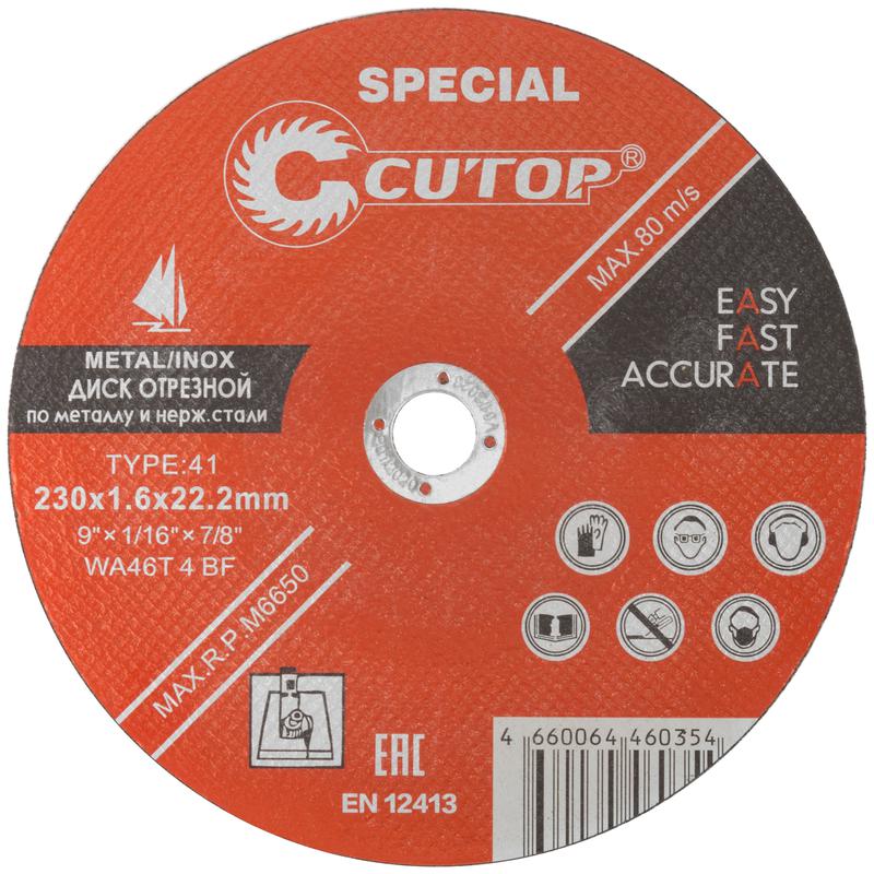 Диск отрезной по металлу нержавеющей стали и алюминию Special Т41-230х1.6х22.2мм Cutop 40014S