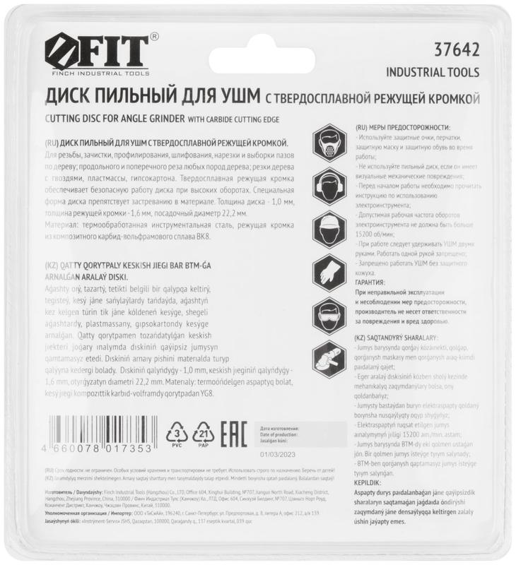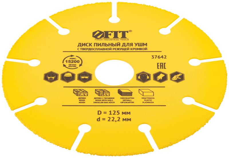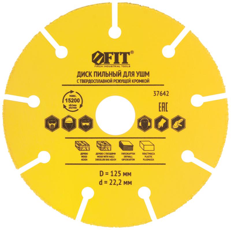 Диск пильный для УШМ FIT IT применяется для резьбы, зачистки, профилирования, шлифования, нарезки и выборки пазов по дереву, продольного и поперечного реза любых пород дерева; резки дерева с гвоздями, ламината, пластмассы, гипсокартона. Специальная форма диска препятствует застреванию в материале. Предназначен для работы на больших оборотах.