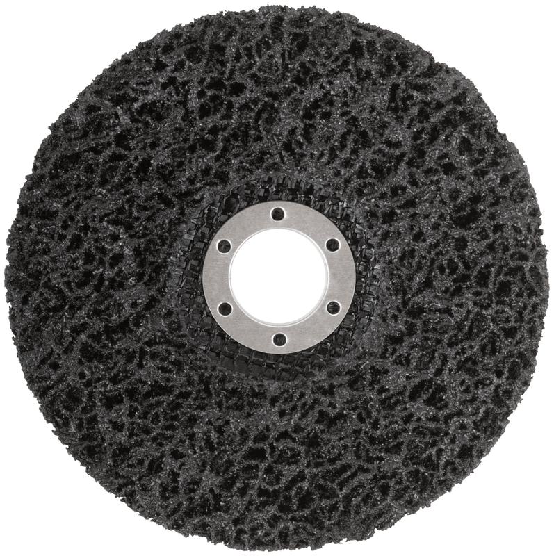 Диск зачистной полимерный MOS предназначен для очистки гладких металлических поверхностей от ржавчины и краски. Используется с УШМ. Благодаря специальной структуре диски гораздо меньше загрязняются и нагреваются при работе по сравнению с привычным абразивным инструментом. После снятия покрытия не так сильно заглубляются в материал зачищаемой поверхности. Быстро снимают краску и ржавчину с поверхности. Не размазывают краску по поверхности. Оставляют после себя гладкую поверхность. Внимание! Для наилучшего результата и продления срока службы оснастки крайне важно соблюдать следующие условия работы: держать обороты не выше 4500 в минуту; работать с минимальным прижимом; стараться избегать углов, отверстий, выступов.