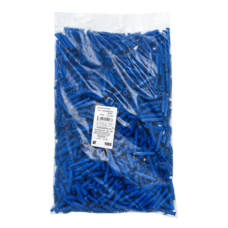 Дюбель четырехраспорный (универсальный) Чапай 6х40 шипы+усы (син.) (уп.1000шт) Tech-KREP 111144