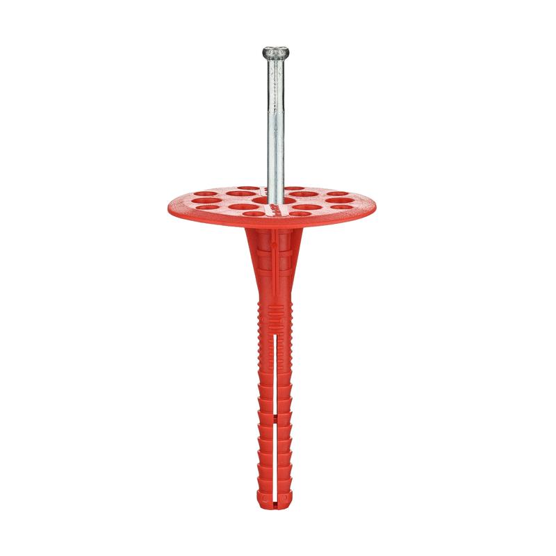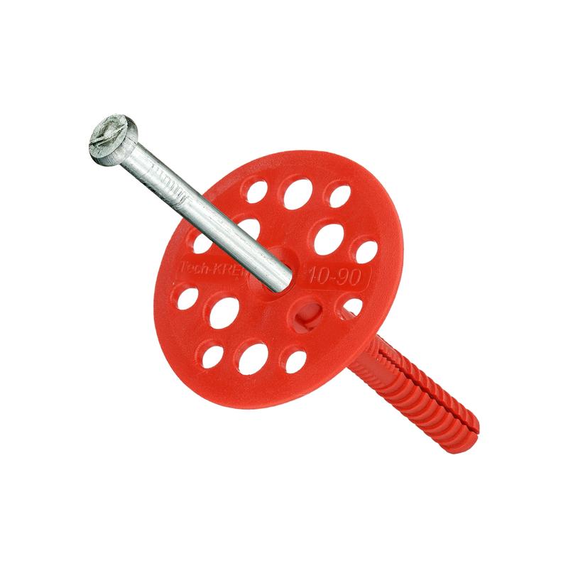 Тарельчатый дюбель IZM состоит из следующих элементов: дюбель с двухсегментной распорной зоной и увеличенной прижимной шайбой диаметром 60 мм, и распорный элемент – гвоздь. Дюбель выполнен из полипропилена, гвоздь – из углеродистой стали с антикоррозионным горячеоцинкованным покрытием. Дюбель предназначен для крепления теплоизоляционных строительных материалов и изделий (толщиной до 240 мм) к основаниям из бетона, кладки из полнотелого силикатного керамического и пустотелого керамического кирпича, ячеистого бетона. Установка производится методом сквозного монтажа. В среднем на 1 кв. м площади теплоизоляции применяется 5-6 дюбелей.