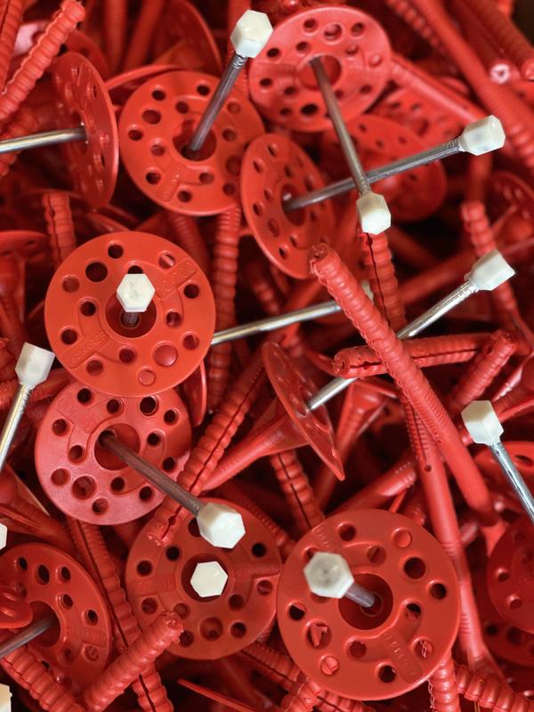 Тарельчатый дюбель IZL-T состоит из следующих элементов: дюбель с двухсегментной распорной зоной и увеличенной прижимной шайбой диаметром 60 мм, и распорный элемент – гвоздь с термоголовкой, которая предотвращает образование «мостика холода». Дюбель выполнен из полипропилена, гвоздь – из углеродистой стали с антикоррозионным горячеоцинкованным покрытием, термоголовка гвоздя – из полиамида. Дюбель предназначен для крепления теплоизоляционных строительных материалов и изделий (толщиной до 240 мм) к основаниям из бетона, кладки из полнотелого силикатного керамического и пустотелого керамического кирпича, ячеистого бетона. Установка производится методом сквозного монтажа. В среднем на 1 кв. м площади теплоизоляции применяется 5-6 дюбелей.