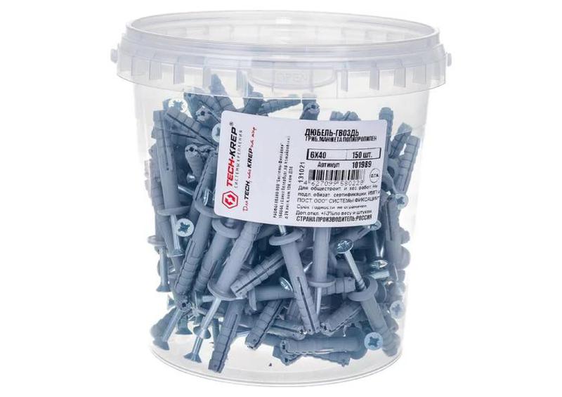 Дюбель-гвоздь 6х40 с грибовидной манжетой полипропилен (уп.150шт) ведро Tech-Krep 101989
