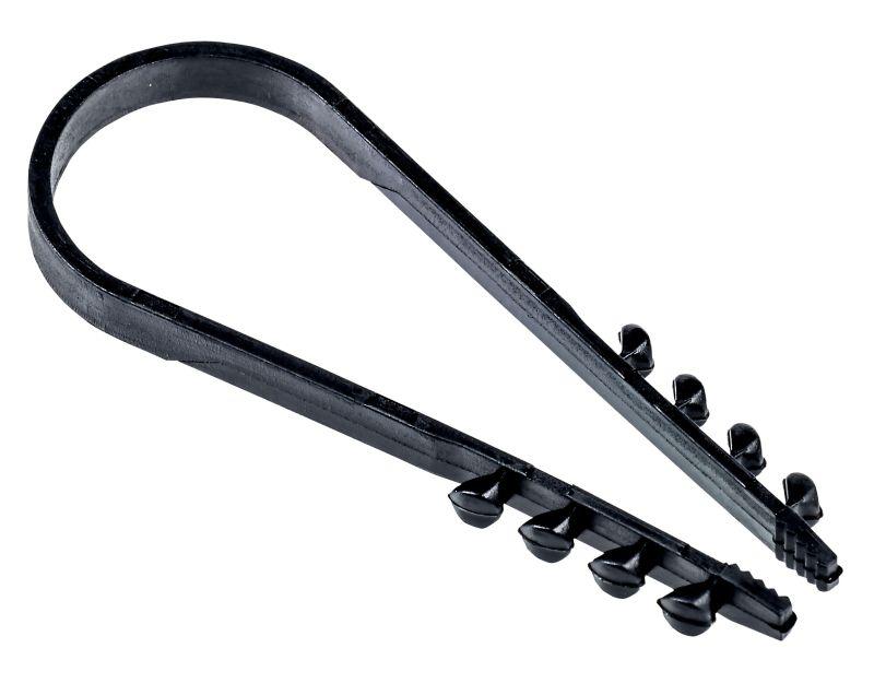 Дюбель-хомут предназначен для фиксации круглых проводов, кабелей и труб на несущих строительных конструкциях, работающих в статическом состоянии. Хомут предназначен для однократного применения. Хомут допускается крепить к конструкциям из: бетона, кирпича, пеноблока, природного камня.