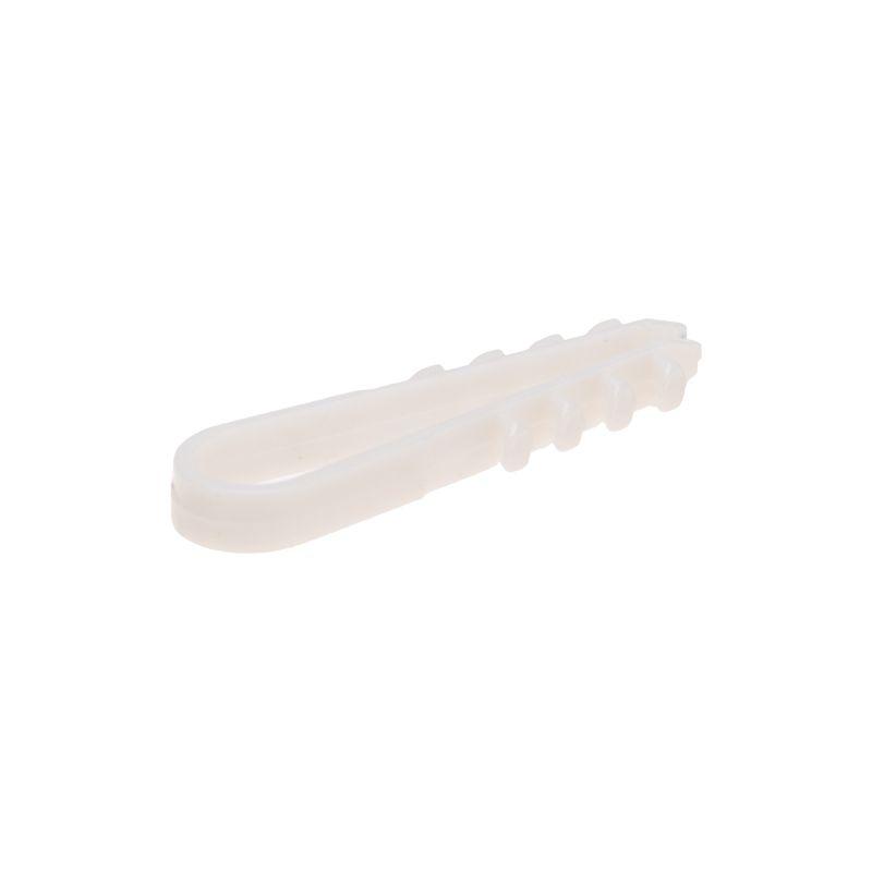 Круглый дюбель-хомут 5-10 мм предназначен для крепления круглого кабеля к поверхности открытым или закрытым способом. Благодаря особой форме может также использоваться для крепления нескольких кабелей. Дюбель-хомут представляет собой крепежное изделие с боковыми шипами и петлей для удержания кабеля. За счет шипов дюбель легко фиксируется в отверстии, но для его извлечения понадобится приложить усилие. Важно: для надежной фиксации дюбеля необходимо соблюдать точные параметры при сверлении отверстия, а для этого желательно использовать новую оснастку, которая не успела износиться. Дюбель может быть установлен в бетон, кирпич, дерево, газобетон и природный камень. Морозостойкие добавки добавляют крепежу устойчивость к низким температурам и позволяют использовать его на улице или в неотапливаемых помещениях. В упаковке 100 дюбель-хомутов белого цвета.
