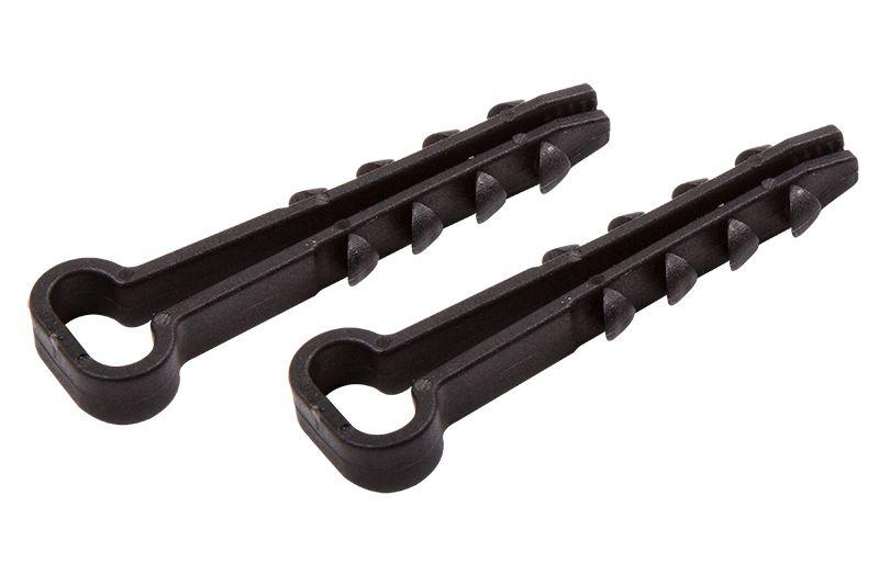 Прямоугольный дюбель-хомут 5-10 мм предназначен для крепления плоского кабеля к поверхности открытым или закрытым способом. Дюбель-хомут представляет собой крепежное изделие с петлей для удержания кабеля и уникальной системой боковых шипов типа «елочка». Благодаря шипам крепеж легко вставляется в отверстие и не выпадает, а для извлечения такого дюбеля понадобятся плоскогубцы. Важно: для надежной фиксации дюбеля необходимо соблюдать точные параметры при сверлении отверстия, а для этого желательно использовать новую оснастку, которая не успела износиться. Дюбель может быть установлен в бетон, кирпич, газобетон и природный камень. Морозостойкие добавки добавляют крепежу устойчивость к низким температурам и позволяют использовать его на улице или в неотапливаемых помещениях. В упаковке 100 дюбель-хомутов черного цвета.