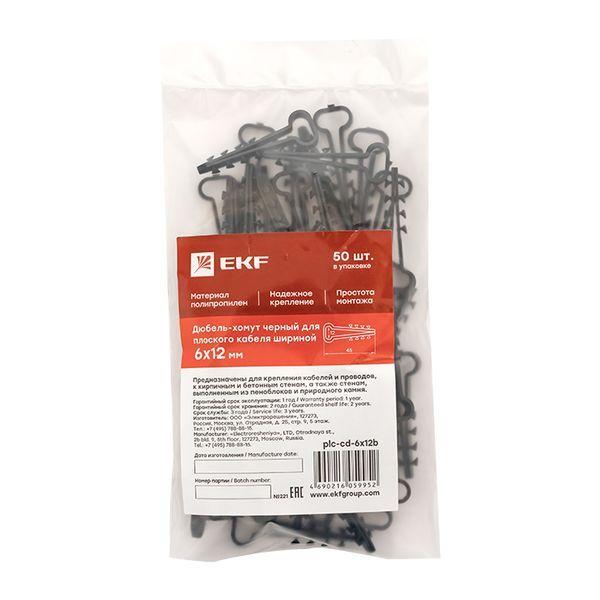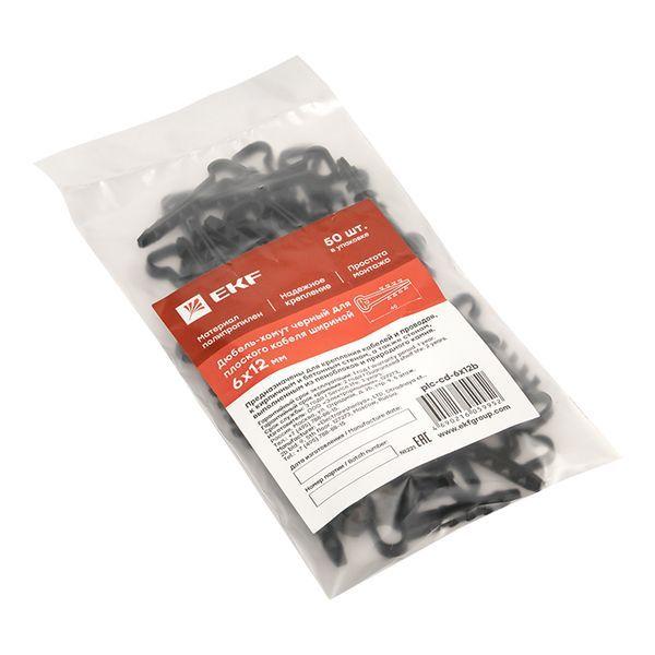 Дюбель-хомут d6х12мм для плоского кабеля полипропилен черн. (уп.50шт) EKF plc-cd-6x12b