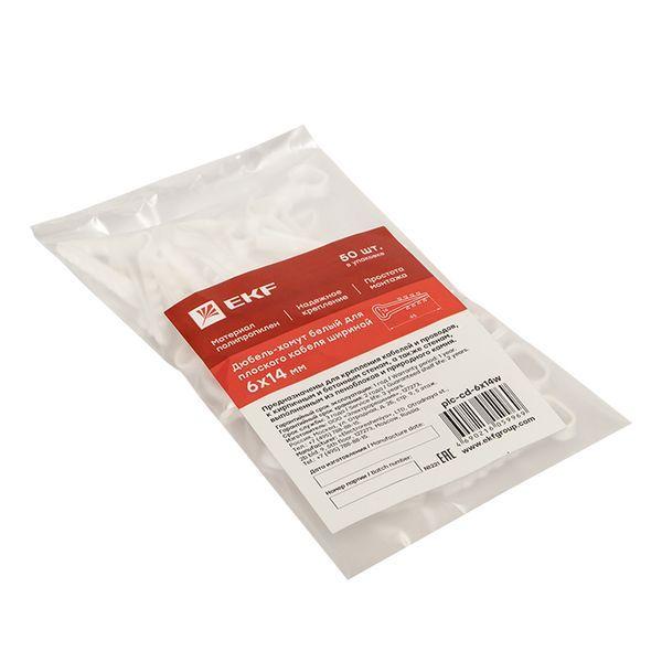 Дюбель-хомут d6х14мм для плоского кабеля белый (уп.100шт) PROxima EKF plc-cd1-6x14w
