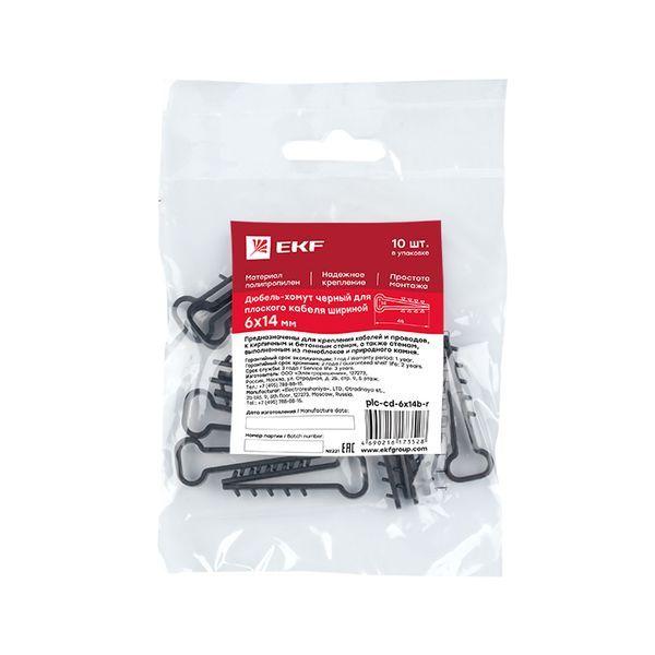 Дюбель-хомут d6х14мм для плоского кабеля черный (уп.10шт) PROxima EKF plc-cd-6x14b-r