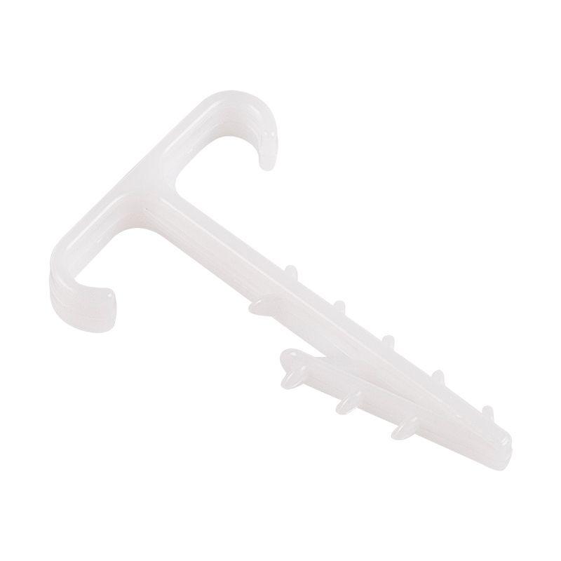 Т-образный дюбель-хомут для двух кабелей 12 мм предназначен для крепления к поверхности двух кабелей одновременно открытым или закрытым способом. Дюбель-хомут представляет собой крепежное изделие с уникальной системой боковых шипов типа «елочка» и скобой для удержания кабелей. Благодаря шипам крепеж легко вставляется в отверстие и не выпадает, а для извлечения такого дюбеля понадобятся плоскогубцы. Важно: для надежной фиксации дюбеля необходимо соблюдать точные параметры при сверлении отверстия, а для этого желательно использовать новую оснастку, которая не успела износиться. Дюбель может быть установлен в бетон, кирпич, газобетон и природный камень. Морозостойкие добавки добавляют крепежу устойчивость к низким температурам и позволяют использовать его на улице или в неотапливаемых помещениях. В упаковке 100 дюбель-хомутов черного цвета.