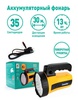 Фонарь Camelion электрический светодиодный аккумуляторный. Цвет корпуса - желтый с черным. Материал корпуса - пластик. Источник света - 35 светодиодов с цветовой температурой 8200К, максимальным световым потоком 88 люмен. Дистанция освещения - до 30 метров. Выключатель - кнопочного типа. Время работы при полностью заряженном аккумуляторе: до 12 часов. Время заряда - 16 часов. Дополнительные возможности - режим аварийного включения при выключении сетевого электричества во время заряда. Комплектация: фонарь, свинцово-кислотный аккумулятор с напряжением 6 В емкостью 4 А-ч, светодиодный индикатор заряда, сетевой кабель ~220 вольт для заряда, поворотная рукоятка, упаковка, инструкция. Степень пыле-влаго-защиты IP22. Упаковка - коробка. Максимальный линейный размер фонаря 20 см. Размер упаковки 15 см x 18 см x 21 см. Вес без упаковки 0,999 кг. Вес с упаковкой 1,1 кг.