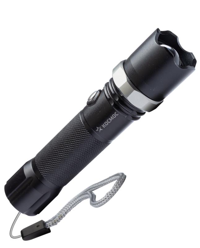 Фонарь аккумуляторный ручной LED 3Вт линза зум аккум. Li-ion 18650 1.2А.ч USB-шнур анодир. алюм. КОСМОС KOS112Lit