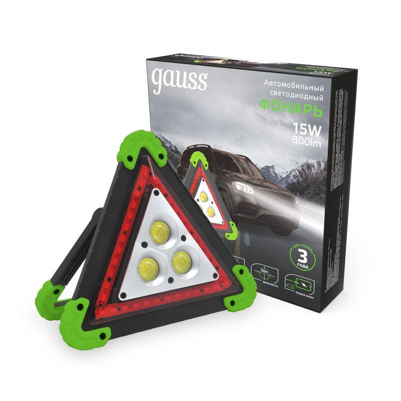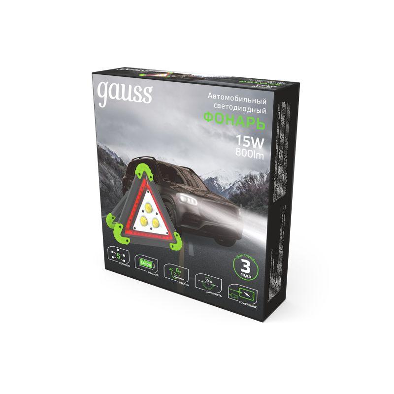 Фонарь автомобильный аккумуляторный GFL 15Вт 800лм IP33 аккум. Li-ion 2400мА.ч Power Bank GAUSS GF802