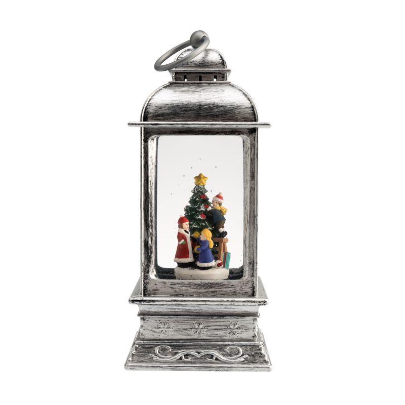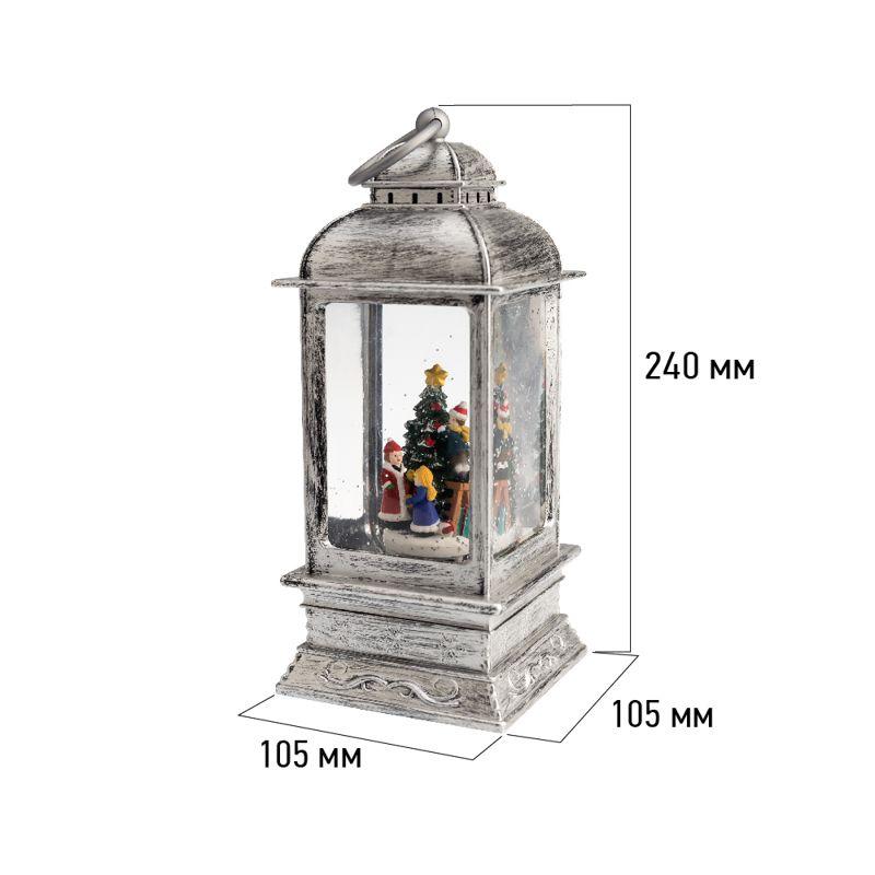 Декоративный фонарь «Рождество» — великолепное интерьерное украшение, символизирующее Новый год и Рождество. Светильник с эффектом снегопада и подсветкой выполнен в серебристом цвете, внутри находятся фигурки детей, наряжающих елку. Портативный фонарь питается от 4 батареек типа ААА или от сетевого блока через USB-шнур. Вьюга, создаваемая сверкающими блестками, кружится внутри колбы и подсвечивается белыми диодами. Декоративный фонарь станет прекрасным подарком детям и взрослым, принесет атмосферу зимней сказки в ваш дом. В случае потери или порчи шнура питания из комплекта в качестве замены использовать шнур 18-0235.
