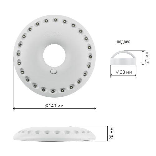 Светодиодный кемпинговый фонарь KB-501 разработан для эксплуатации на природе и в походных условиях. То есть функциональный дизайн предусматривает комфортное использование в различных ситуациях. Корпус фонаря выполнен из ударопрочного пластика, а сами светодиоды вмонтированы глубоко в корпус. Это сделано для дополнительно защиты светодиодов. Светодиоды располагаются по кругу, что позволяет осветить большую площадь, а дальность луча составляет 10 метров, при мощности в 4,4 Вт. Фонарь светит мощным, ярким и белым светом благодаря 24 качественным светодиодам. Питается от трёх батареек АА. Отверстие по центру фонаря не только придаёт фонарю современный и интересный внешний вид, но и выполняет определённую функцию. Если надеть фонарь на бутылку или любой другой предмет, то получится настольная лампа. Фонарь оборудован магнитами и крепится на металлические поверхности. В комплекте предусмотрен кронштейн для подвешивания. Универсальность в использовании делает этот фонарь практичным и надёжным инструментом в дороге. К тому же он лёгкий и достаточно компактный.