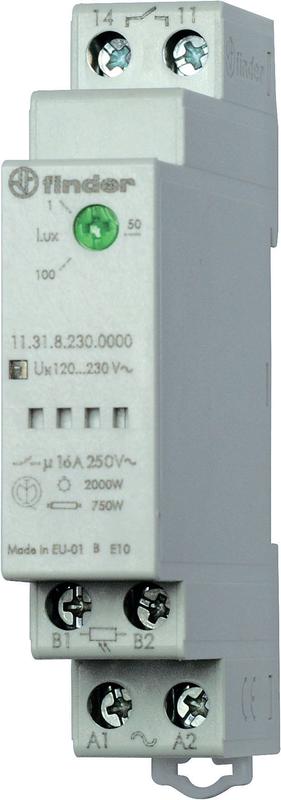 Фотореле модульное с фотоэлементом 011.02 монтаж на рейку 35мм 1NO 16А 230В AC 1…100люкс 17.5мм фотореле IP20/фотоэлемент IP54 FINDER 113182300000