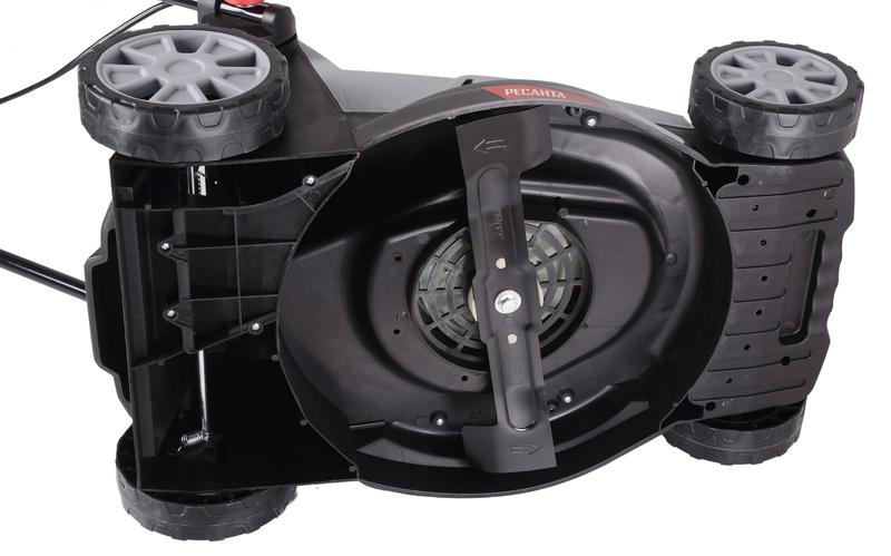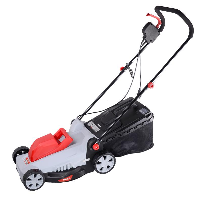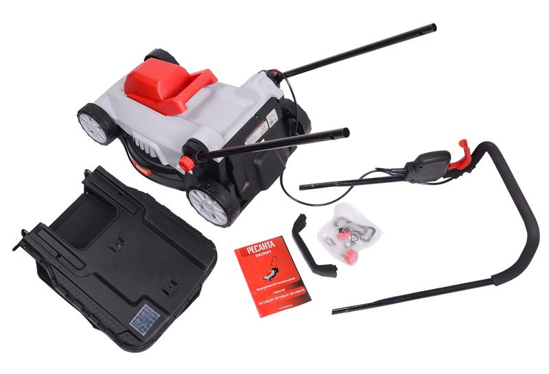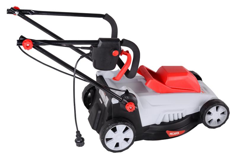 Электрическая газонокосилка Ресанта КР-1500 ЭТ с мощностью двигателя 1500 Вт предназначена для ухода за газоном на придомовом участке. Скорость работы двигателя 3200 об/мин и увеличенная до 38 см ширина среза обеспечивают быструю и качественную обработку территории средней площади. Электрогазонокосилка оснащена системой индивидуальной регулировки высоты среза в пределах 25-55 мм. Прочность стали обеспечивает длительный срок службы ножа и позволяет добиться идеального газона с минимальными усилиями и временными затратами. Материал ножа устойчив к коррозии, окислению, механическим повреждениям. Травосборник электрической газонокосилки выполнен из прочной ткани. Он способен вместить до 35 литров скошенной травы и обеспечивает длительную продолжительность непрерывной работы. Манёвренные колеса позволяют без усилий перемещать устройство по любой поверхности. Прочный и легкий пластик корпуса, складная конструкция ручки, компактные размеры и вес 11,5 кг обеспечивают удобство в использовании и хранении. В отличие от бензиновых моделей, электрогазонокосилка Ресанта КР-1500 ЭТ не требует дополнительного ухода и не имеет ограничений по времени непрерывной работы. Преимуществом является отсутствие вредных выхлопов и низкий уровень шума. Рукоятка имеет телескопическую направляющую и способна подстраиваться под рост оператора. Прорезиненная накладка делает управление газонокосилкой простым и удобным. Основные характеристики: Бренд Ресанта Материал травосборника Ткань Мощность, Вт 1500 Напряжение питающей сети, В 220-230В, ~50 Гц Обороты холостого хода, об/мин 3200 Объем травосборника, л 35 Габариты упаковки 0.455 ? 0.455 ? 0.455 м Регулировка высоты среза Индивидуальная, 25 - 55 Ширина среза, мм 380 Вес, кг 11.5 кг