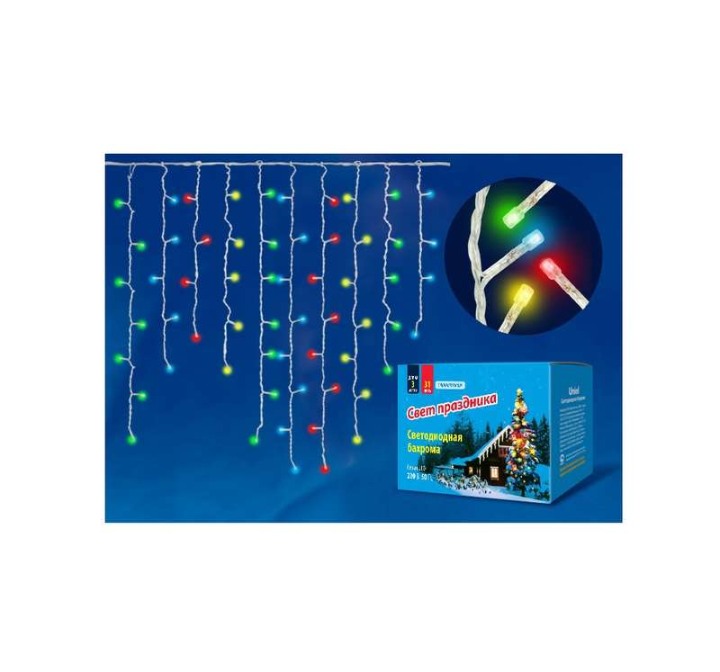 Гирлянда "Бахрома" светодиодная ULD-B3010-200/DTA MULTI IP20 с контроллером 3м 200 светодиодов свет разноцветный провод прозр. Uniel UL-00002270