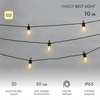 Уличная гирлянда Лофт представляет собой готовый к использованию комплект с уже установленными в патроны светодиодными лампами. Мягкое свечение достигается благодаря рассеивателю уникальной формы. Гирлянда выполнена из электрического провода длиной 10 метров, заключенного в изоляционную оболочку из морозостойкого, гибкого, прочного каучука черного цвета. Каждая лампа имеет удобный крючок для крепления на трос. Гирлянда защищена от влаги и пыли по стандарту IP65 и подходит для размещения на улице. На концах расположены влагозащищенные коннекторы, с помощью которых можно соединить гирлянду до 10 комплектов.