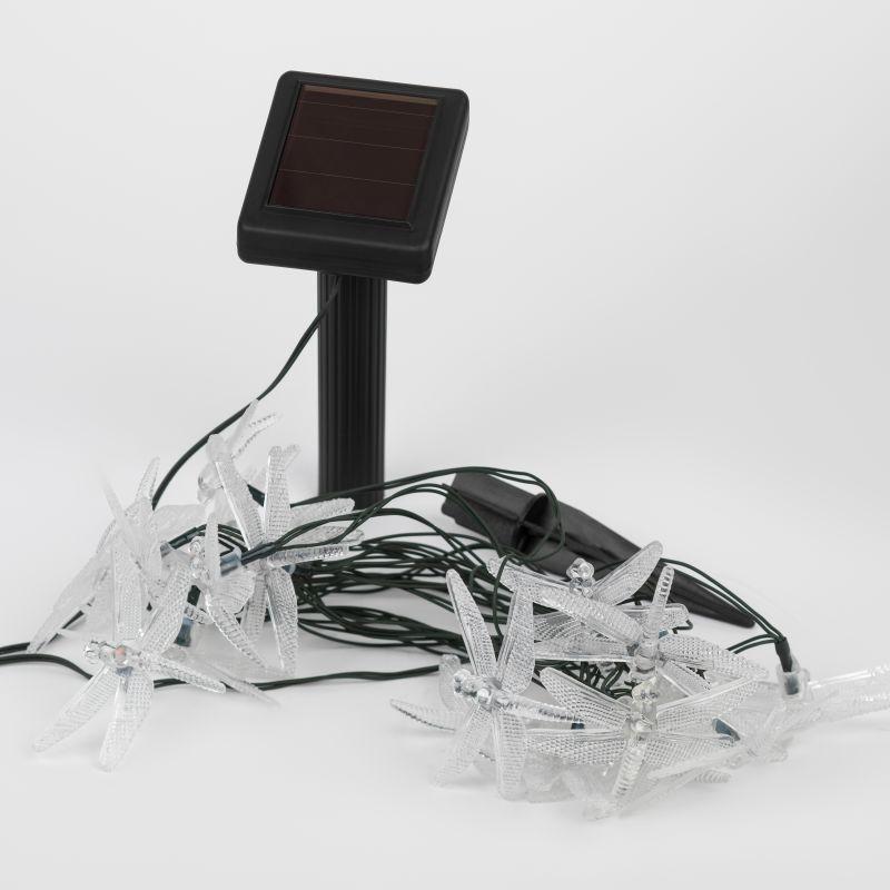 Уличная гирлянда ERASF22-16 Стрекоза 5.8 м от бренда ЭРА станет изящным украшением Вашего дачного участка! Этот светодиодный светильник внесет оригинальности и легкости в атмосферу сада - повесьте его на кустарник, осветите беседку или вход в дом. Состоит из 20 прозрачных фигурок в виде стрекоз, подсвеченных светодиодами с разноцветным свечением. Гирлянда работает на солнечной батарее - такой тип получения энергии является наиболее экологичным, энергоемким, а также бесшумным. Питание происходит во включенном режиме, днем, а с наступлением ночи гирлянда автоматически загорается и работает до 8 часов. 2 режима свечения - постоянный и мигающий - позволят создать праздничное настроение. Садовый светильник можно оставлять на улице в плохую погоду, благодаря высокой степени пыле- и влагозащиты IP44. Садовая гирлянда на солнечной батарее от компании ЭРА - идеальный вариант для декорирования площади сада.