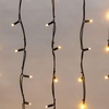 Гирлянда Айсикл (Бахрома) представляет собой гибкий горизонтальный шнур-шину, к которому через определенные промежутки крепятся вертикальные нити разной длины со светодиодами. Гирлянда имитирует сосульки и может послужить оригинальным решением при украшении карнизов, арок, фасадов зданий, витрин магазинов, а также стать эффектным элементом декора внутри помещений. Благодаря использованию светодиодов отличительной особенностью гирлянды является превосходная яркость и низкое энергопотребление. При длине 4 м гибкая направляющая имеет 32 вертикальные нити от 20 до 60 см. Наличие мерцающего эффекта привлекает внимание и значительно преображает украшенную поверхность (мерцает каждый пятый светодиод). Данная гирлянда имеет теплый белый цвет свечения и предназначена для использования как внутри помещений, так и снаружи. Важной особенностью данного исполнения является каучуковый провод, благодаря которому гирлянда отличается высокой надежностью и может быть использована в условиях российского климата, даже в самых холодных регионах страны!